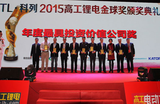 近期,中國新能源行業最高水平會議--2015高工鋰電暨電動車年會在深圳會展中心隆重舉行。時代高科憑借2015年在動力電池領域的快速發展和領先地位,榮獲“年度最具投資價值獎”。“高工金球獎”評選從2013年起開始舉辦,參選企業幾乎涵蓋中國動力電池行業領軍企業,已經成為業內最具含金量和權威性的專業獎項。