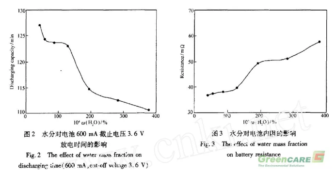 (2)水分含量多于體系形成SE I膜的所需含量時,在SEI膜表面生成POF3和L iF沉淀,導致電池內阻增加。