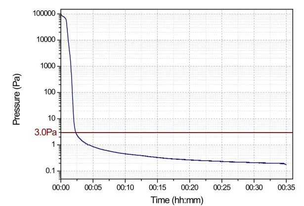 在同一臺設備上的滿載檢測數據發現,滿載真空度可以達到3.3Pa以內。