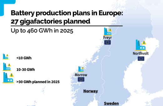 歐盟非政府組織運輸與環境聯合會6月份發布的一份報告顯示,歐洲現有項目中已建設或正在建設的超級工廠總數達到38個,預計總年產量為1000GWh,相當于生產1670萬輛純電動汽車用電池。