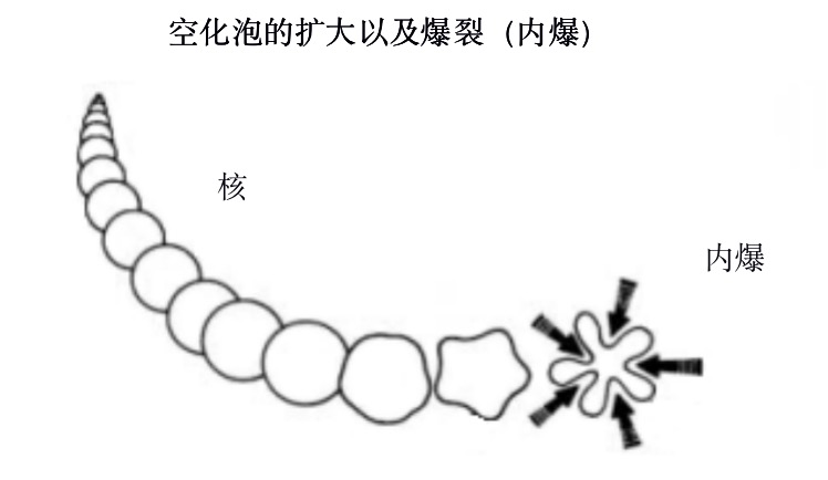 從理論上分析,爆裂的空化泡會(huì)產(chǎn)生超過10,000psi的壓力和20,000BF(11,100BC)的高溫,并在其爆裂的瞬間沖擊波會(huì)迅速向外輻射。單個(gè)空化泡所釋放的能量很小,但每秒鐘內(nèi)有幾百萬的空化泡同時(shí)爆裂,累計(jì)起來的效果將是非常強(qiáng)烈的,產(chǎn)生的強(qiáng)大的沖擊力將工件表面的污物剝落,這就是所有超聲清洗的特點(diǎn)。