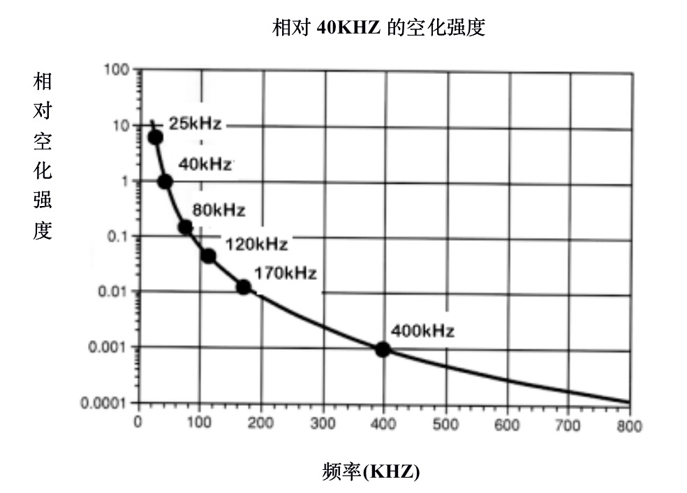 然而只有在某區(qū)域的液體壓力低于該氣泡內(nèi)氣體壓力時(shí)才會(huì)在該區(qū)域產(chǎn)生空化現(xiàn)象,故由換能器產(chǎn)生的超聲波振幅足夠大時(shí)才能滿足這一條件。產(chǎn)生空化所需的最小功率被稱做空化臨界點(diǎn)。不同的液體存在不同的空化臨界點(diǎn),故超聲波能量必須超過該臨界點(diǎn)才能達(dá)到清洗效果。也就是說,只有能量超過臨界點(diǎn)才能產(chǎn)生空化泡,以便進(jìn)行超聲清洗。