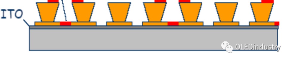 當制備商分辨顯示屏時,ITO線條過細,需要加入金屬輔助電極,加入金屬輔助電極可以使電阻降低,易于進行驅動電路的連接,發光區均勻性和穩定性提高。