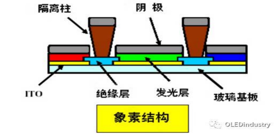 隔離柱的形狀是隔離效果關鍵,絕緣緩沖層來解決同一像素間的短路問題,同時使用倒立梯形的隔離柱來解決相鄰像素間的短路問題。